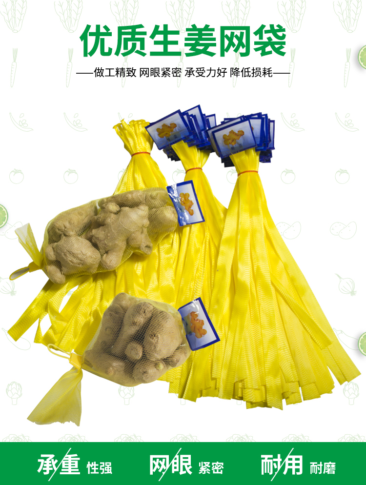 用途: 主要用于生姜的包装,方便运输,方便销售。同时又减少了生姜的损耗。